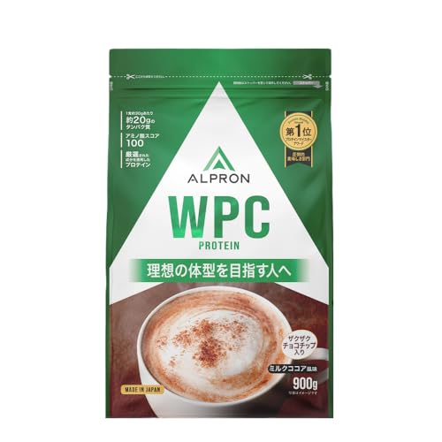 - 商品名は「ALPRON ホエイ プロテイン WPC ミルクココア風味(チョコチップ入り)」です。