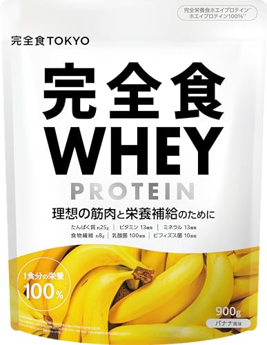 完全食WHEY ホエイ プロテイン 完全栄養食 バナナ風味 たんぱく質25g ビタミン13種 ミネラル13種 WPCプロテイン 900g 食物繊維 30種の栄養 1食分のビタミン&ミネラル26種 乳酸菌 ビフィズス菌 ぷろていん 国内製造 完全食TOKYO ダイエット おいしい